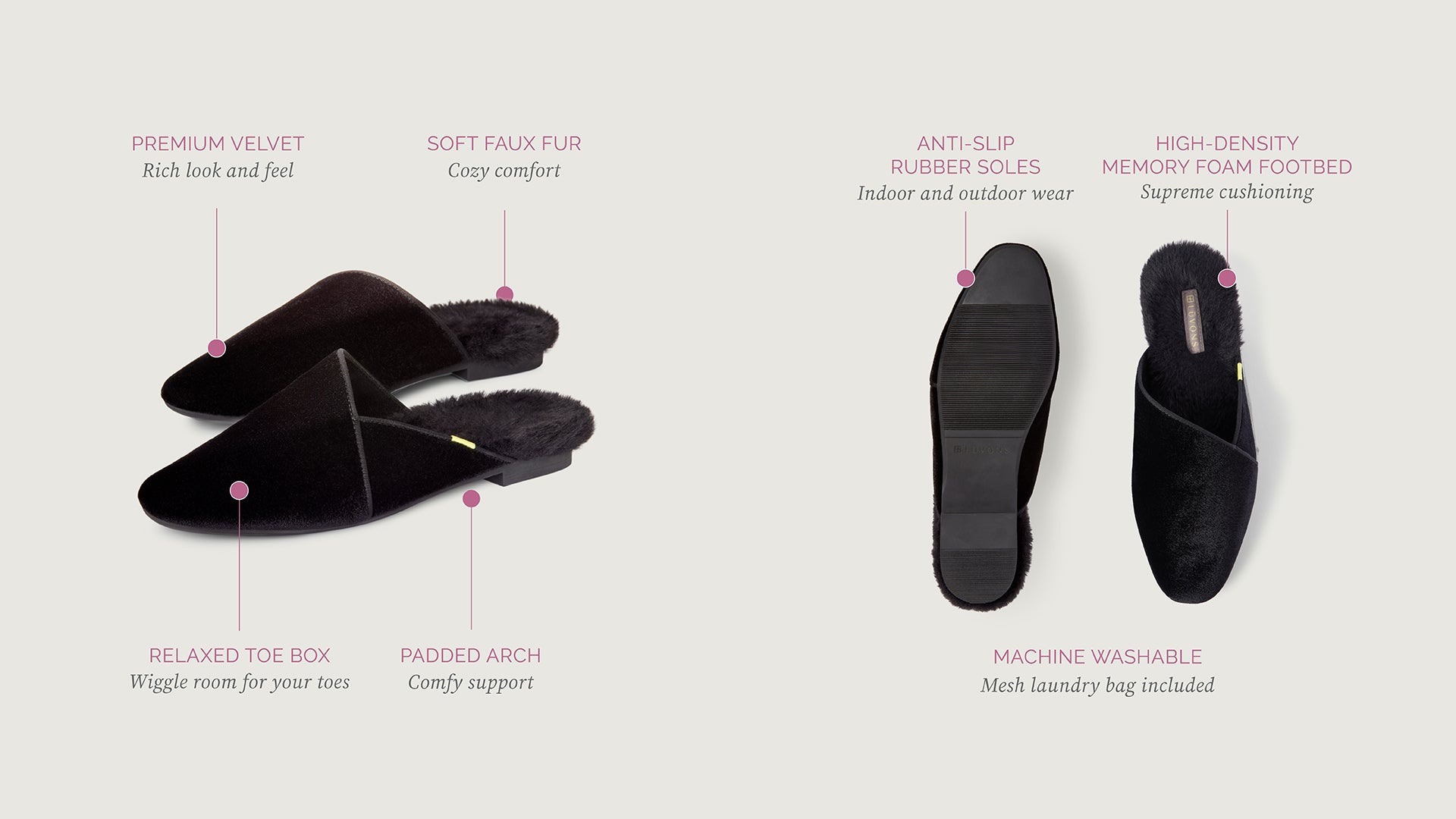 The Devon black velvet slippers for women effortlessly blend modern style with timeless elegance. Crafted from premium velvet and soft faux fur, these slippers deliver all-day comfort with superior arch support and high-density memory foam cushioning.